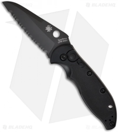 Spyderco Embassy Automatic Knife (3.13″ Black Full Serr) C121BKS